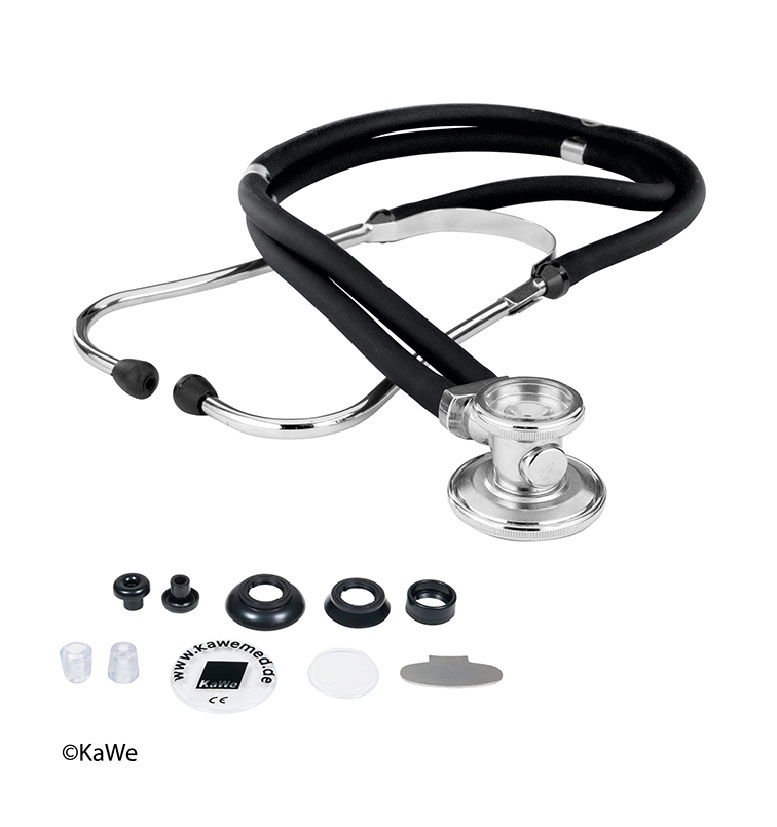 El estetoscopio de pieza pectoral doble Rapport con su excelente acústica ha demostrado su eficacia desde hace muchos años. Disponible en diferentes colores, es uno de los estetoscopios preferidos entre los estudiantes. Cada estetoscopio viene con un amplio juego de piezas de recambio.